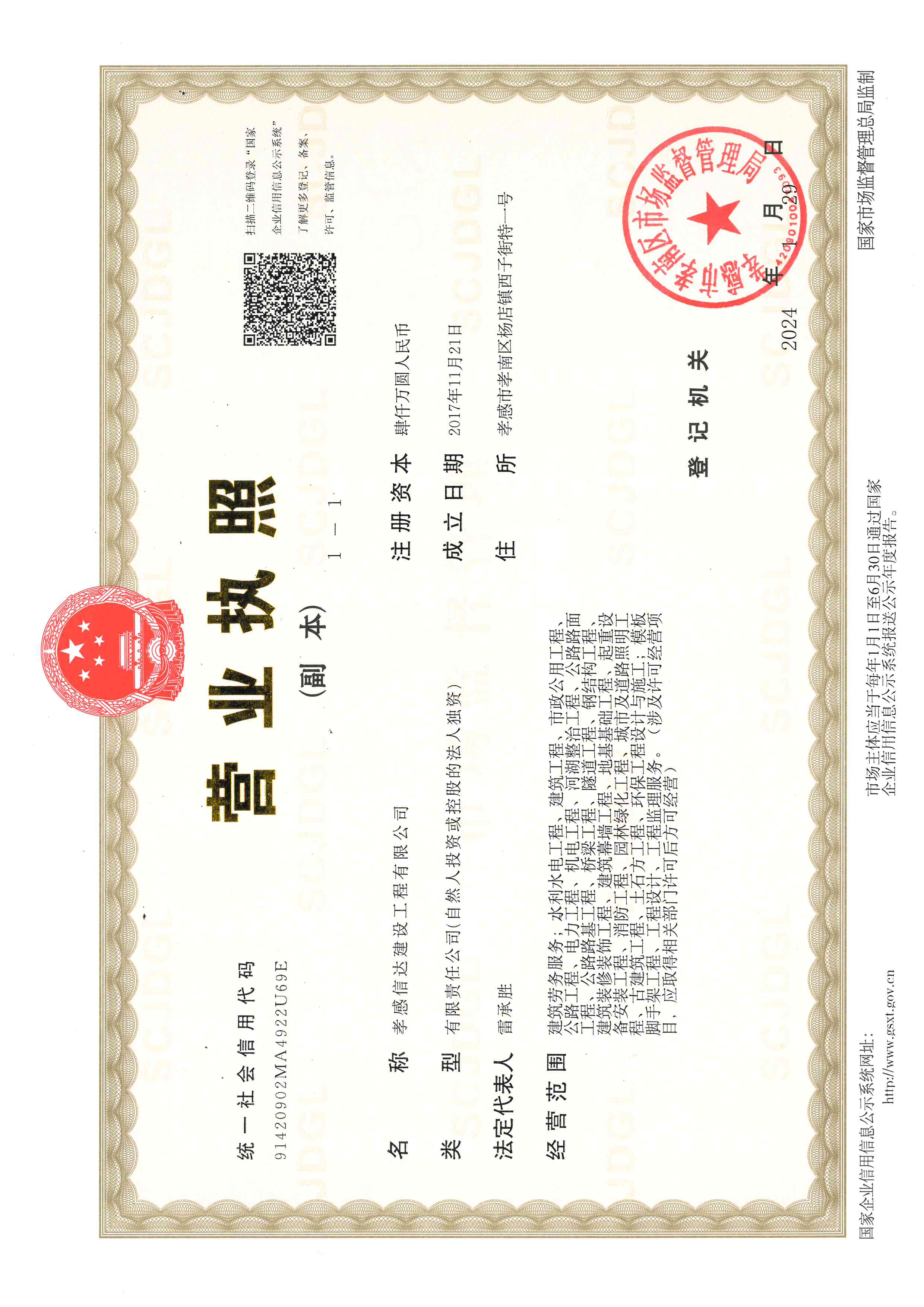 我公司擁有市政公用工程施工總承包貳級(jí)、環(huán)保工程專(zhuān)業(yè)承包貳級(jí)及水利水電工程施工總承包貳級(jí)資質(zhì),經(jīng)營(yíng)范圍:建筑勞務(wù)服務(wù);水利水電工程、建筑工程、市政公用工程、公路工程、電力工程、機(jī)電工程、河湖整治工程、公路路面工程、公路路基工程、橋梁工程、隧道工程、鋼結(jié)構(gòu)工程、建筑裝修裝飾工程、建筑幕墻工程、地基基礎(chǔ)工程、起重設(shè)備安裝工程、消防工程、園林綠化工程、城市及道路照明工程、古建筑工程、土石方工程、環(huán)保工程設(shè)計(jì)與施工;模板腳手架工程、工程設(shè)計(jì)、工程監(jiān)理服務(wù)等。